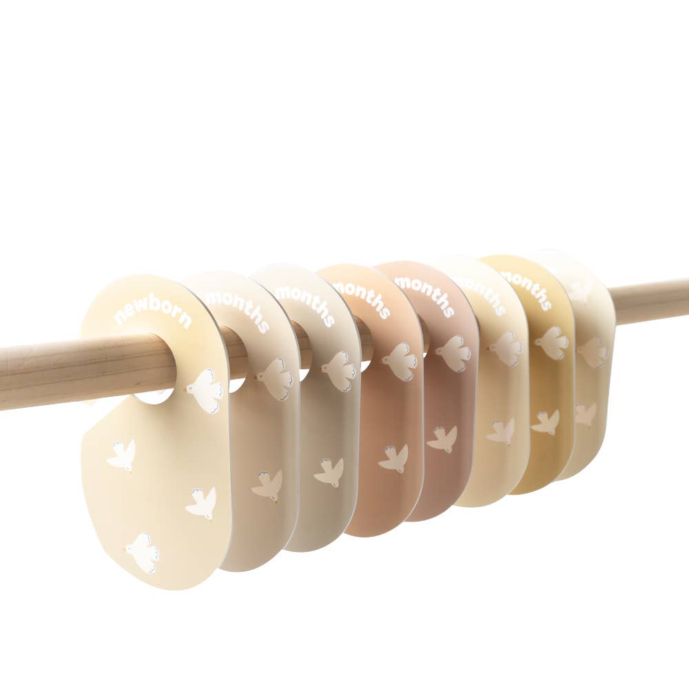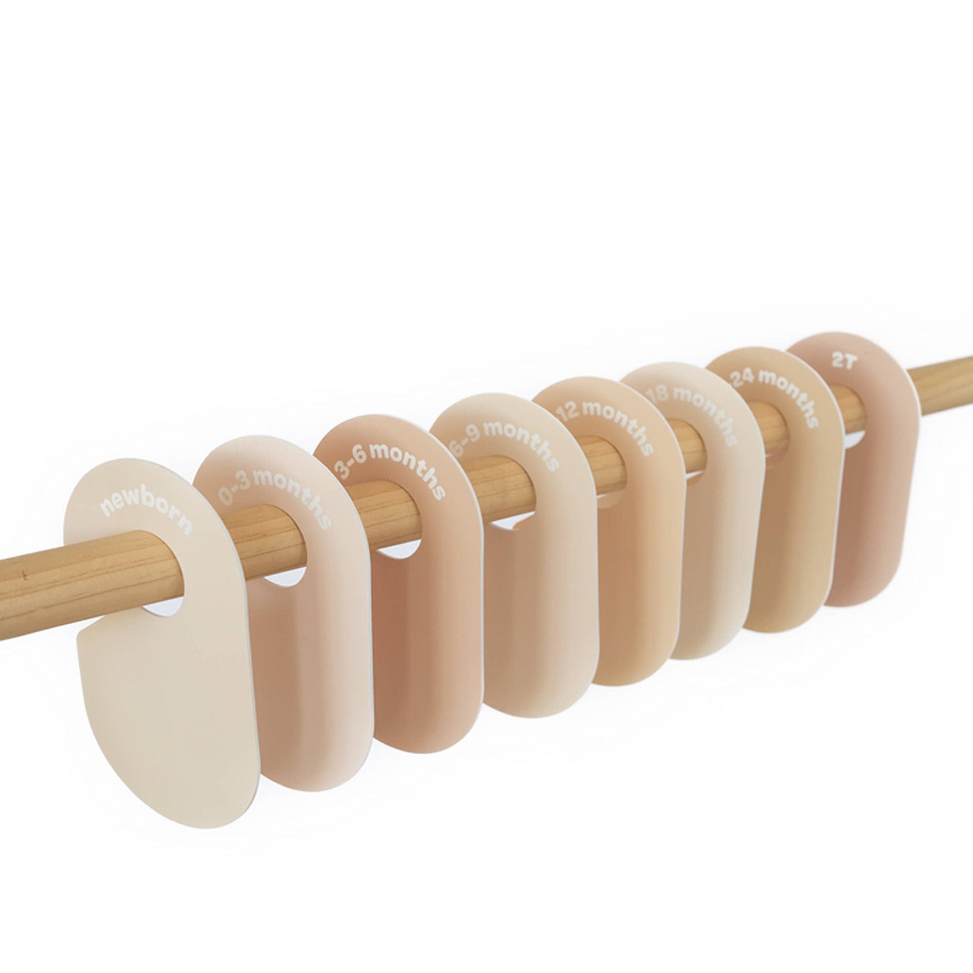 Bring peace to the closet chaos with this beautifully practical 8-piece divider set. Labeled from newborn through 2T, these double-sided closet markers make it effortless to organize your little one’s wardrobe by size.