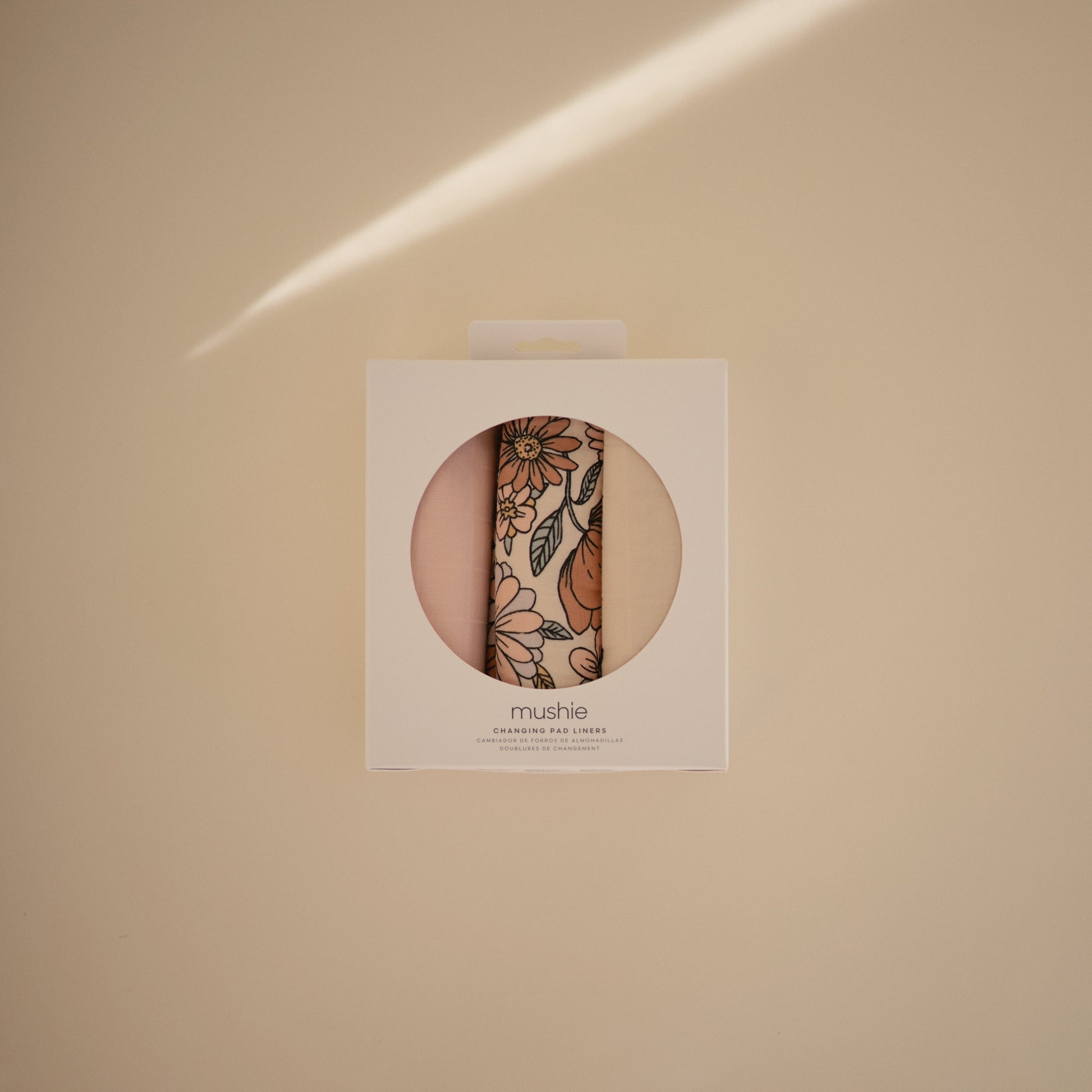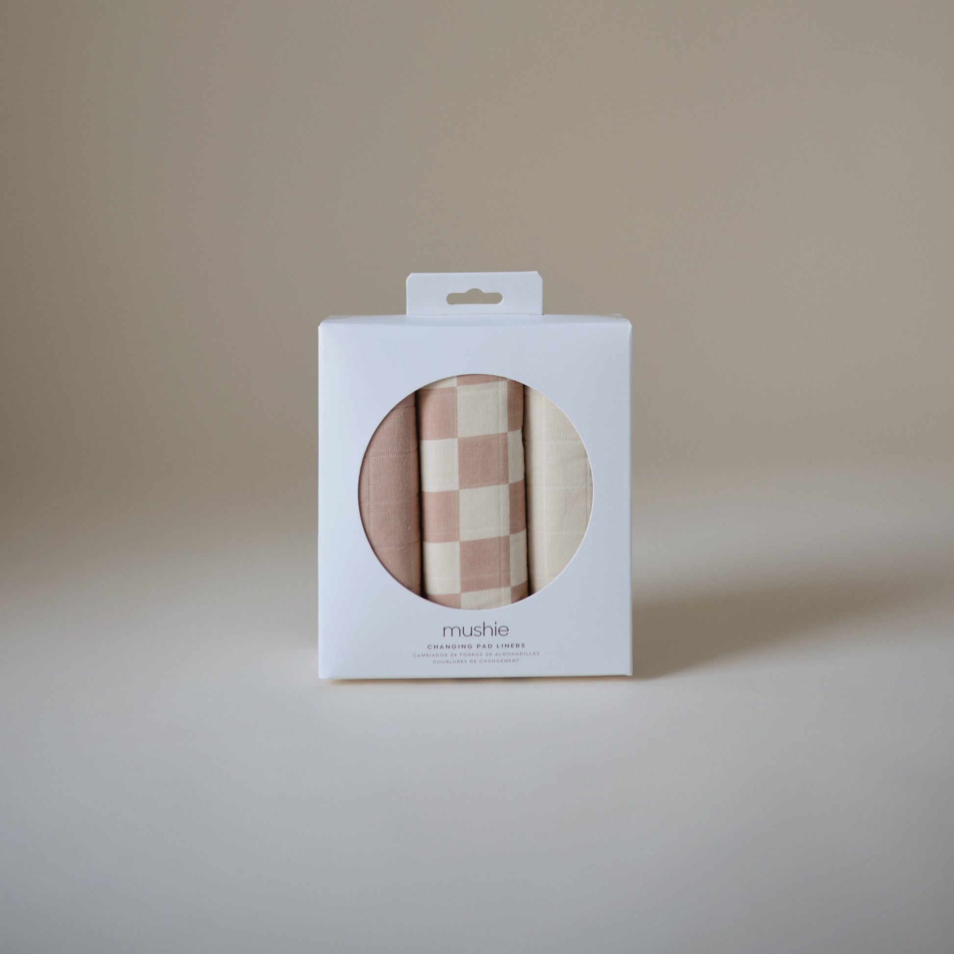 Help keep your baby’s space clean and add a layer of calming comfort to diaper changes with Mushie muslin changing pad liners. Crafted with 100% organic cotton on the top and a soft bamboo blend on the bottom. A water repellent layer helps prevent messes and prolongs time in between changing pad washes. Designed with busy parents in mind, our liners are machine washable, protect most standard size changing pads and easily fit into a diaper bag for on-the-go changes.