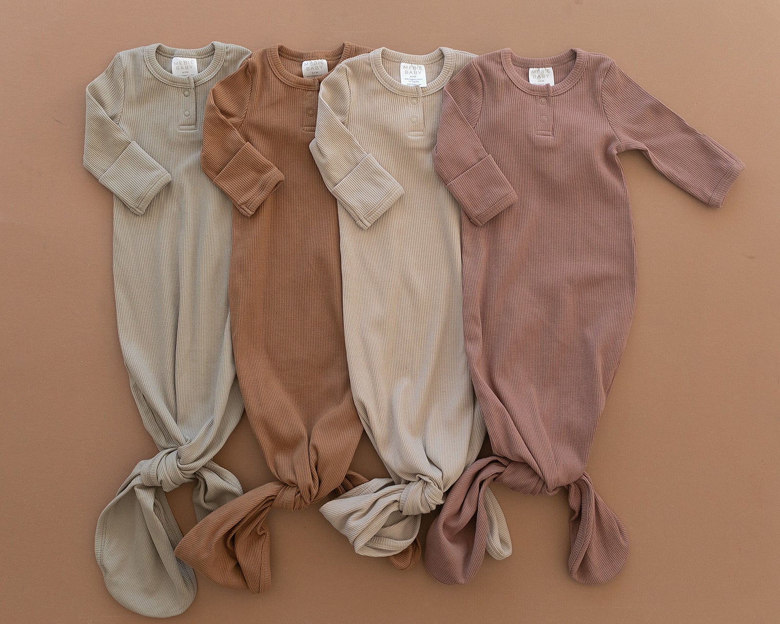 Dusty Rose Organic Cotton Ribbed Knot Gown