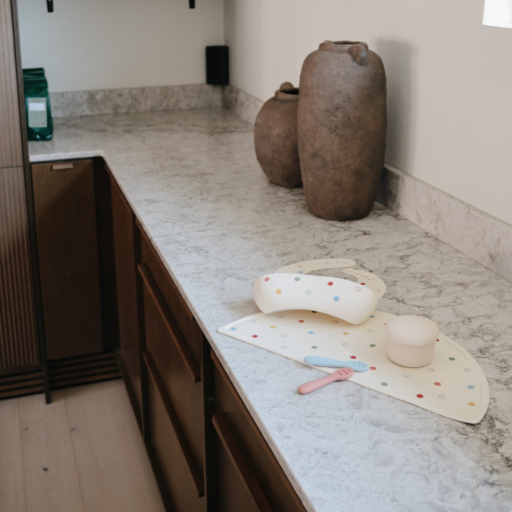 Our First Feeding Baby Spoons are designed to make your little one's transition to self-feeding smoother. Stage 1 has a solid surface without holes, ideal for thin purees and yogurts. When babies are ready for heartier textures, they can transition to Stage 2 with open slots for scooping thicker foods like oatmeal and mashed potatoes. Both versions include sensory dots on each side, providing a soothing experience for teething gums. The flat design ensures there's no wrong way to pick up the spoons, making it easy for little hands to manipulate without requiring wrist rotation.