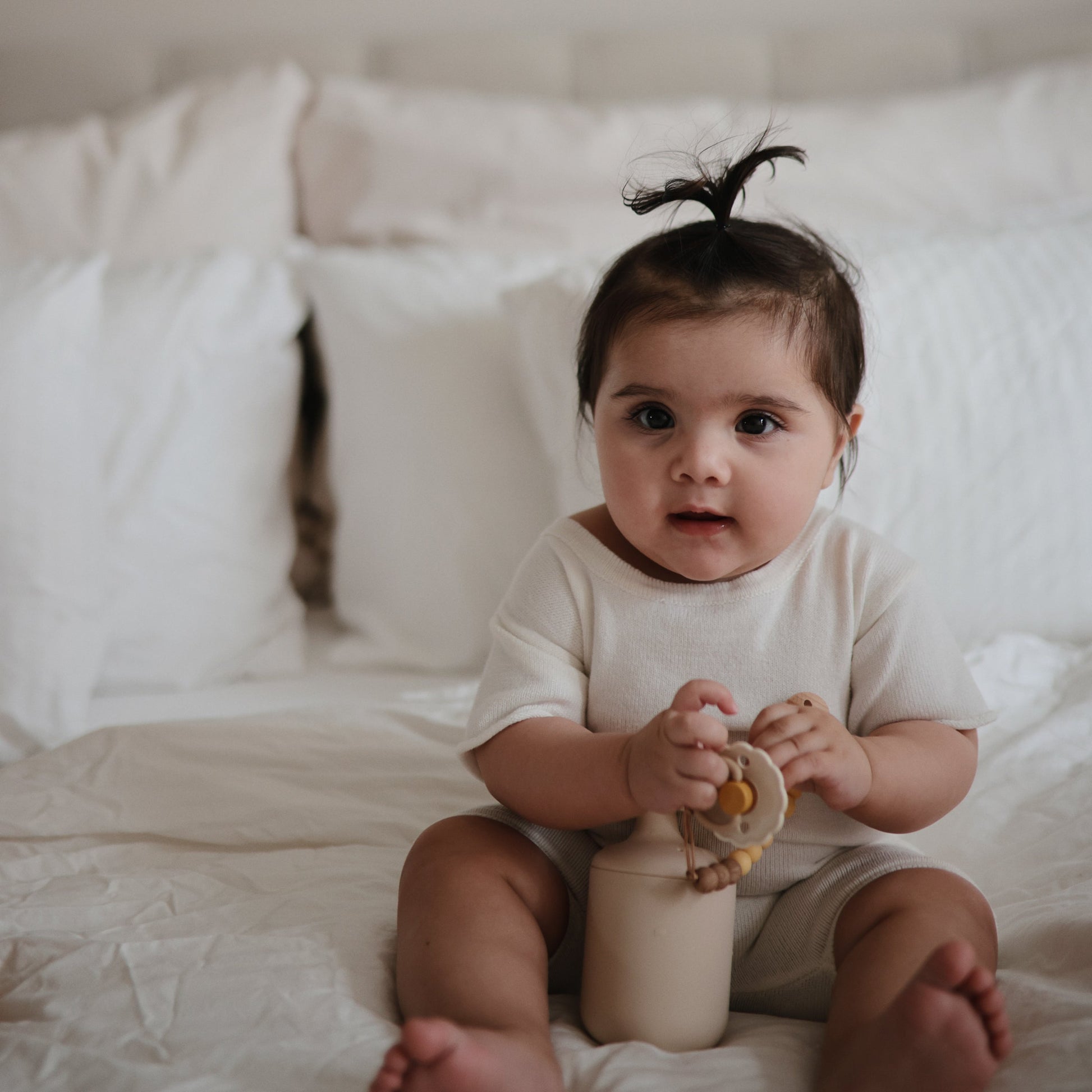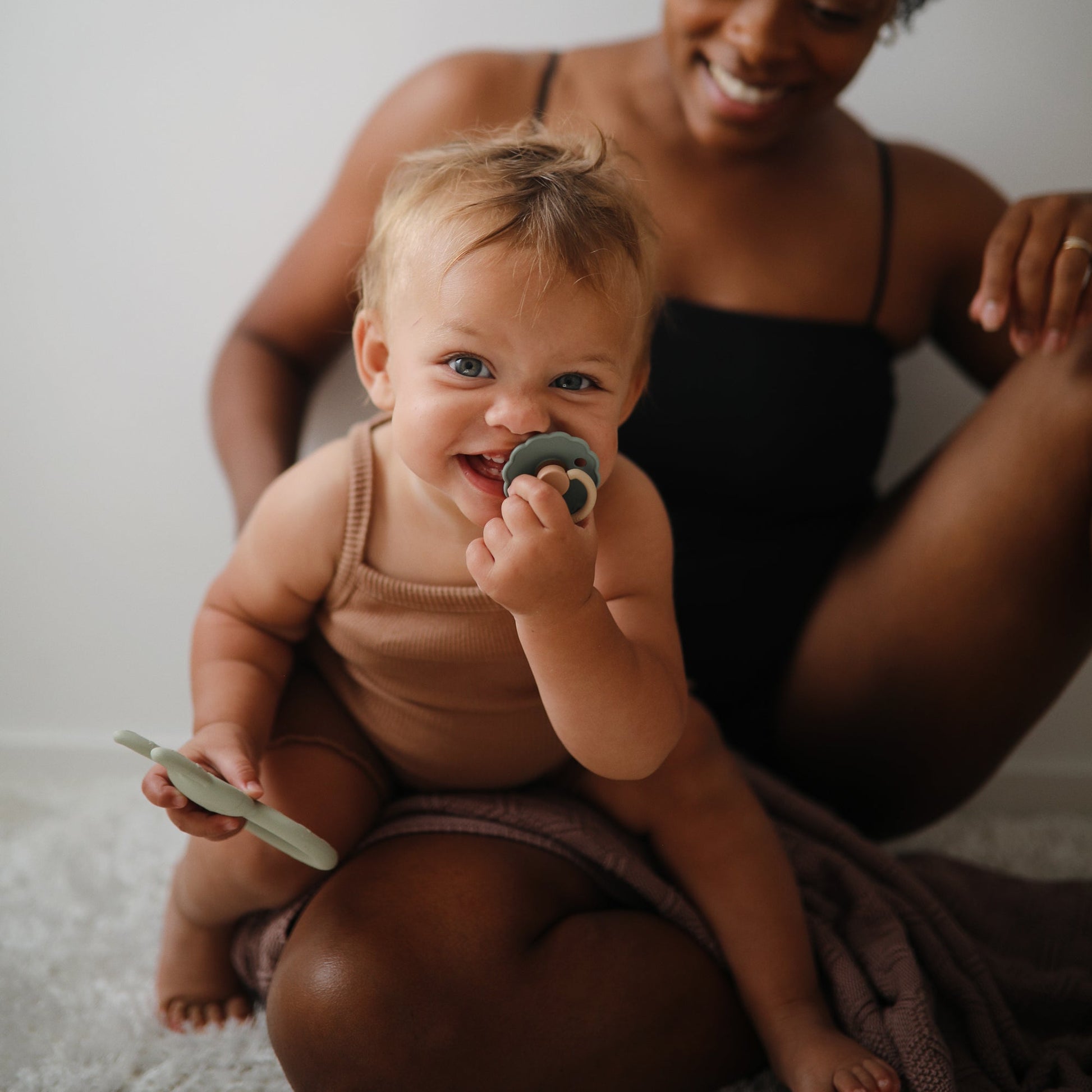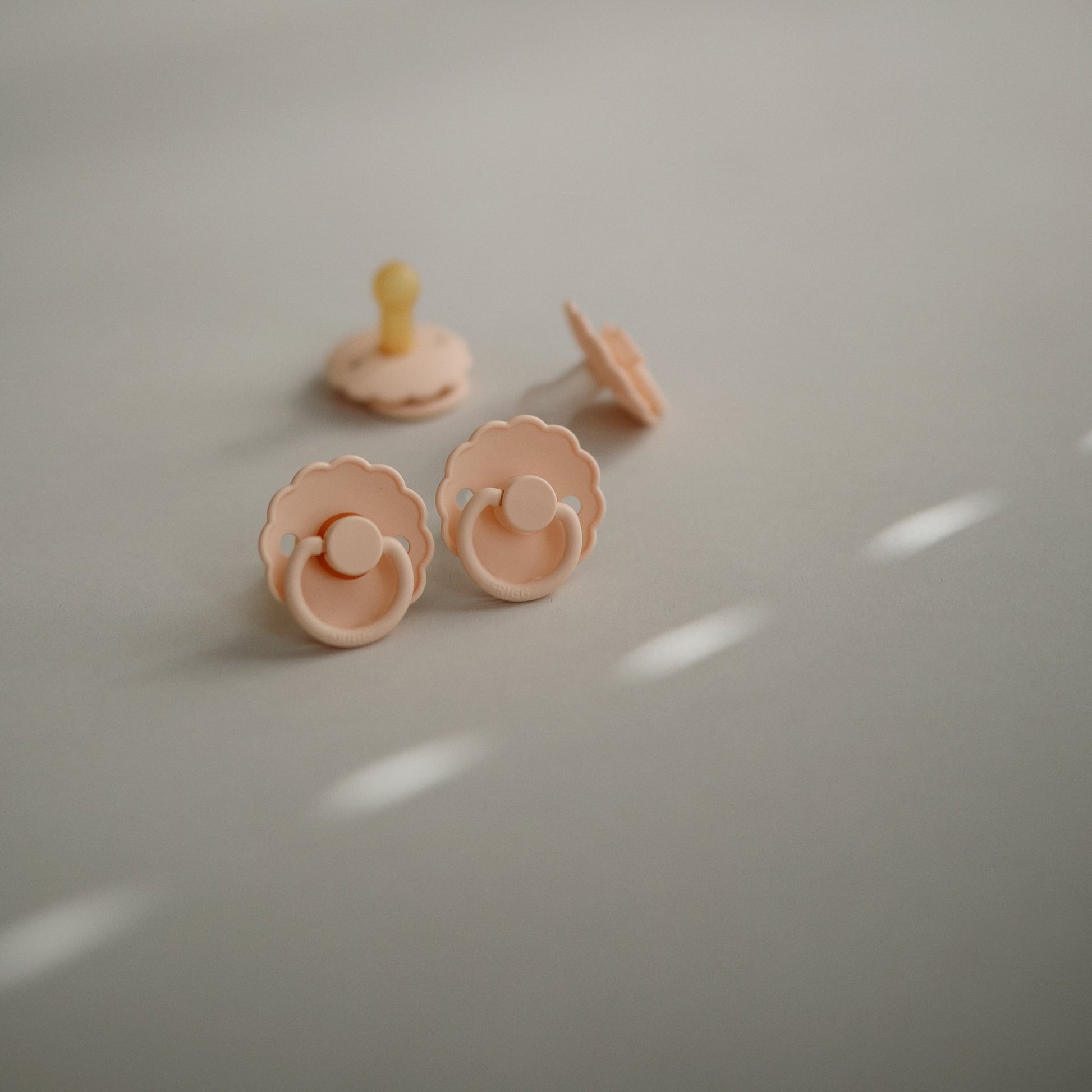 The FRIGG line of daisy natural latex pacifiers has been thoughtfully designed for your baby's comfort. The outward curve keeps the pacifier off their delicate skin, while features like air holes and a security handle ensure your baby stays safe. Available in a range of soft colors, FRIGG pacifiers make a beautiful addition to your collection of baby essentials.