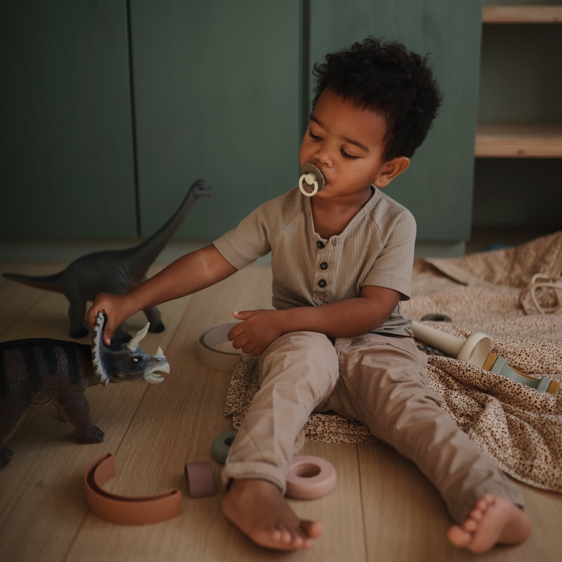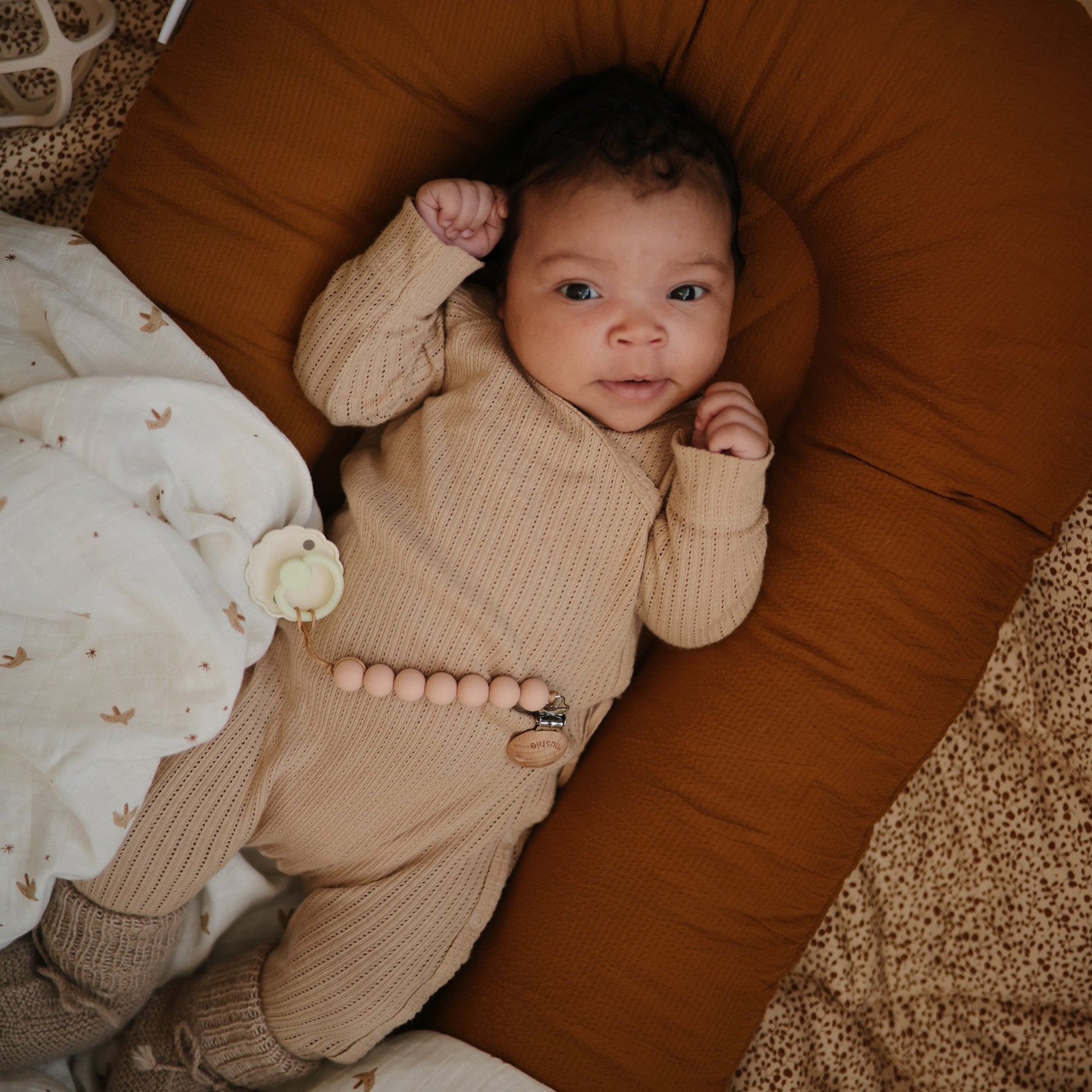 The FRIGG line of night rubber pacifiers is thoughtfully designed for your baby's comfort with a ring and knob that glow in dark settings. The outward curve keeps the pacifier off their delicate skin, and keeps your baby safe with features like air holes and a security handle. Available in a range of soft colors, FRIGG pacifiers make a beautiful addition to your collection of baby essentials.
