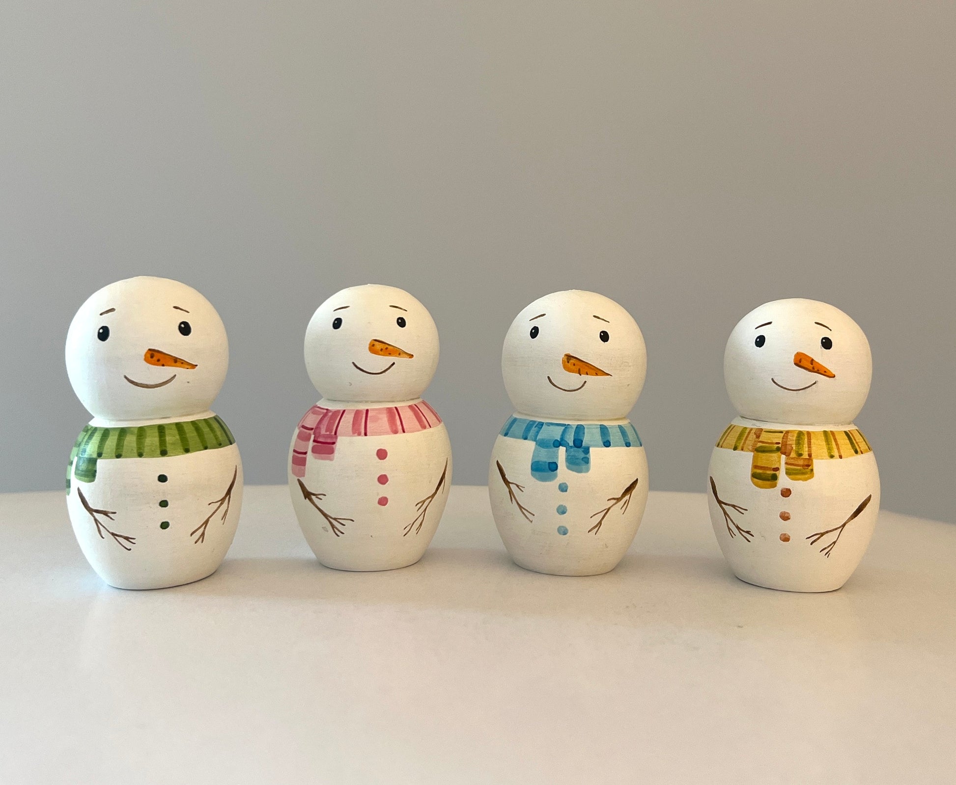 Handcrafted Wooden Snowman Peg Doll – Winter-Themed Figurine for Seasonal Decor