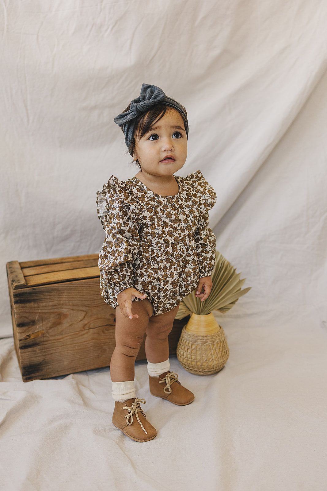 Comfortable socks for your little one that can dress up any outfit! We have three different sizes that go up to 5yrs. We love these new ribbed stretch socks in our eight neutral colors.