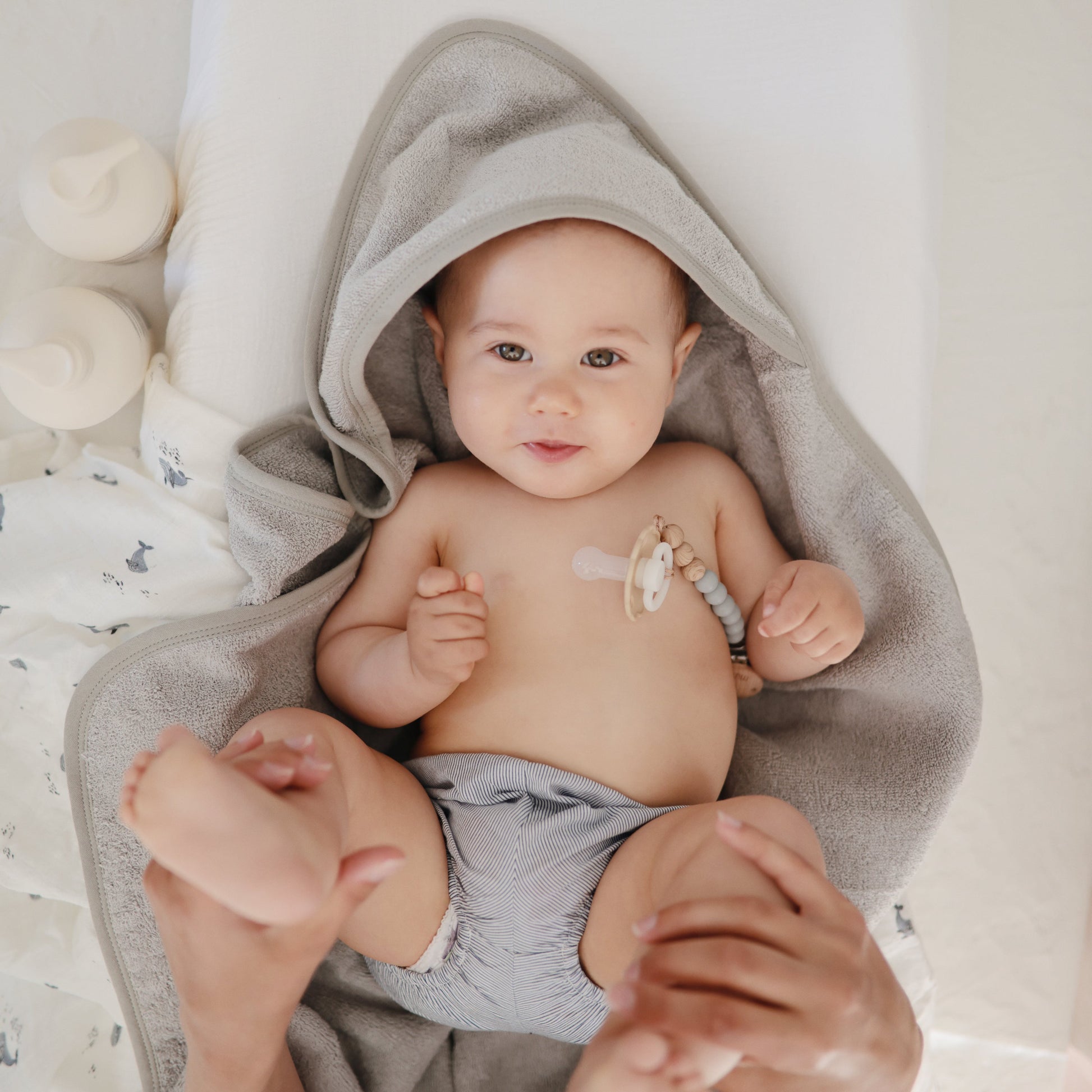 The Mushie silicone pacifier clip offers durability, function and simplicity to families on-the-go. Made from 100% food-grade silicone, our clip features a faux wood silicone clasp that brings a modern take to a traditional favorite. With a simple stack of silicone beads in two complementary colors, the Eva clip offers a sophisticated touch to your pacifier accessories. The clip is easy to clean and helps keep soothing items in reach for little ones.