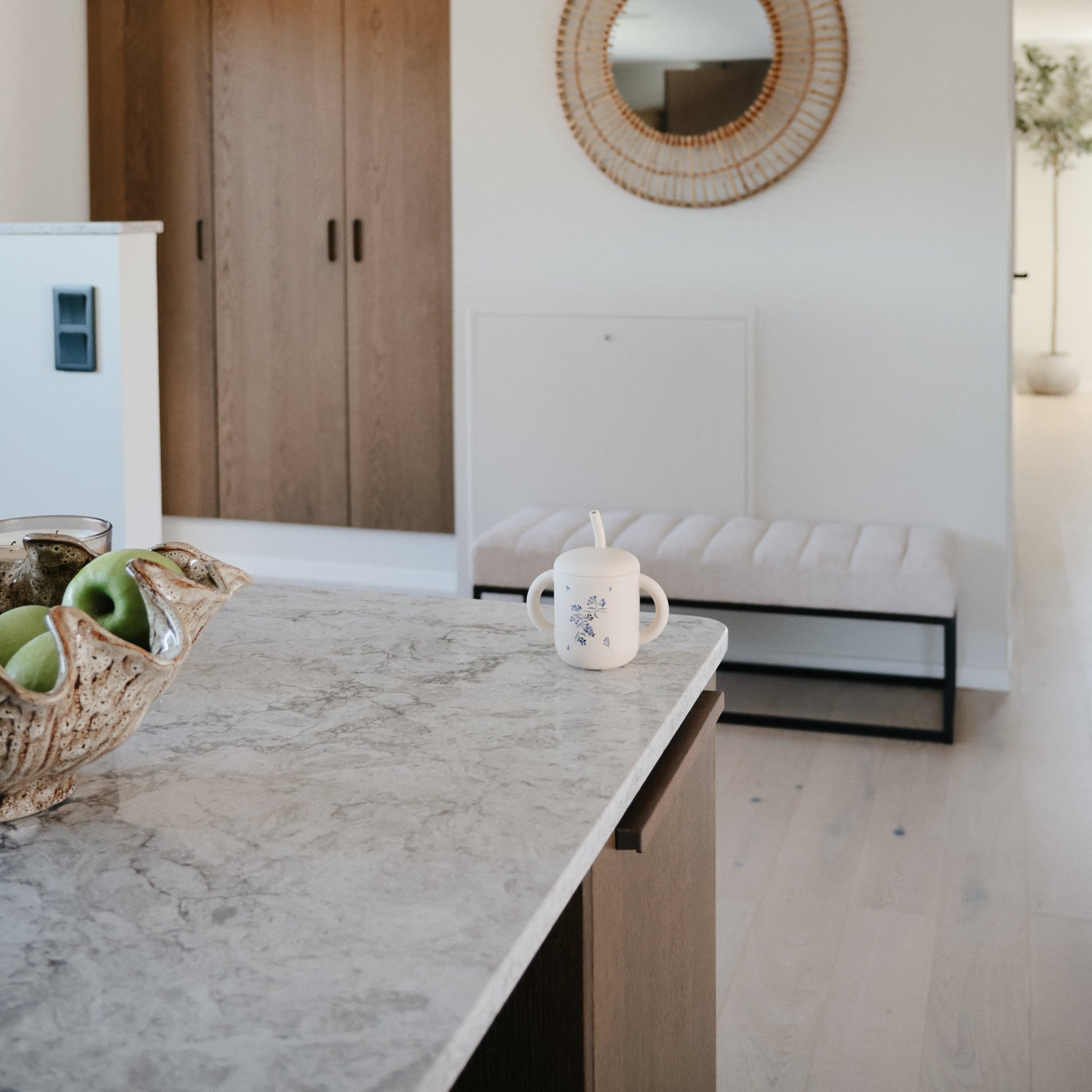 Put a lid on spills and messes with a sophisticated training cup designed for little hands and beautiful homes. Made from 100% food grade silicone, this minimal cup comes with a removable lid and a gentle straw for baby gums and toddler teeth. Build up fine motor skills and start young feeders on their transition journey from bottle to cup.
