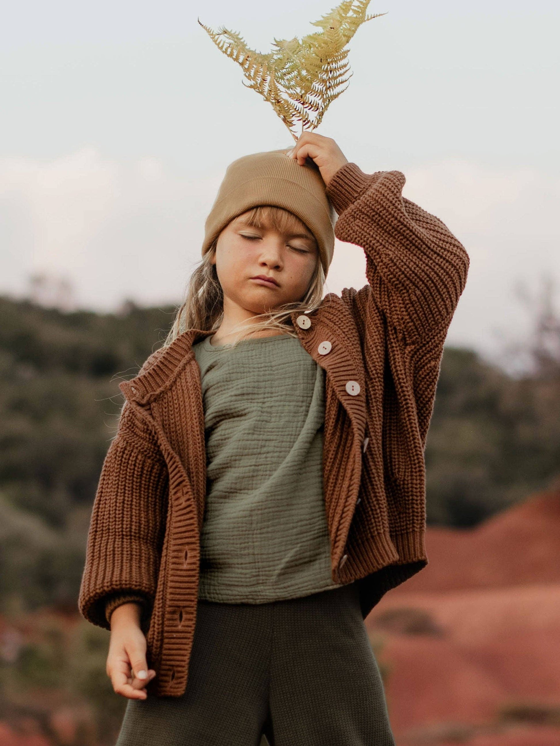 With coconut buttons and a relaxed, slouchy fit, our loose-knit cardigan is the cool weather layering piece that dreams are made of.
