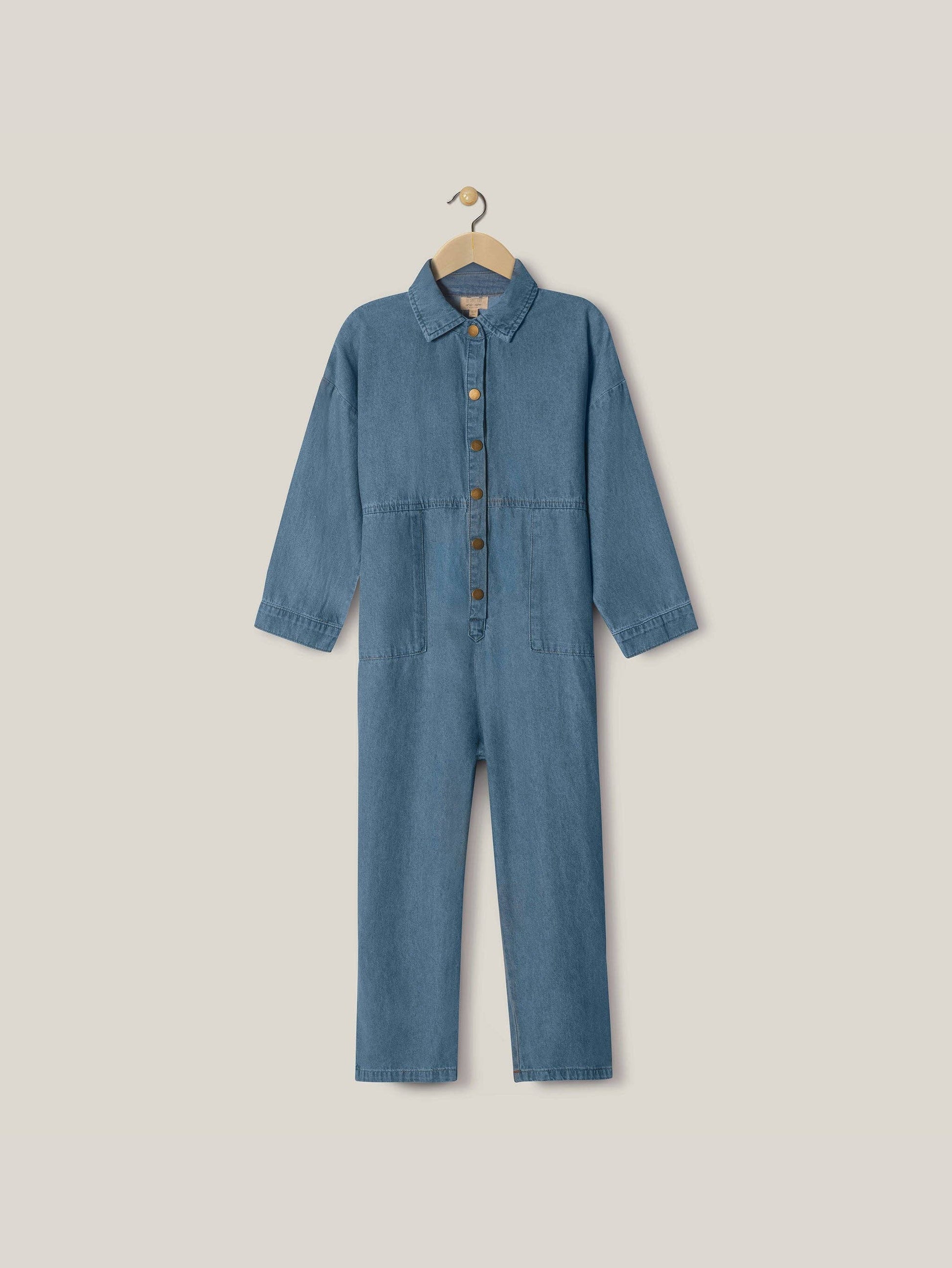 Made from our incredible lightweight vintage style denim, with a stylish collar and deep pockets in the front and the back, this unique and edgy denim boiler suit is tailor-made for real adventures and storing all the treasures your child discovers along the way.