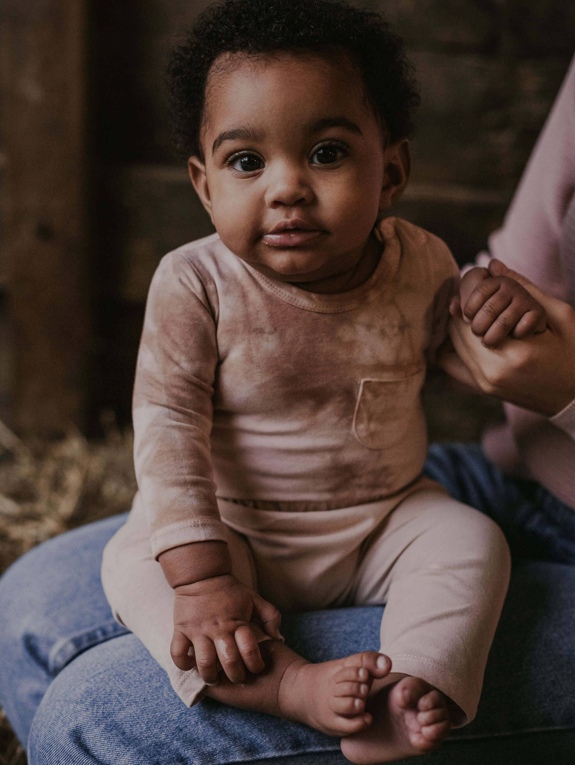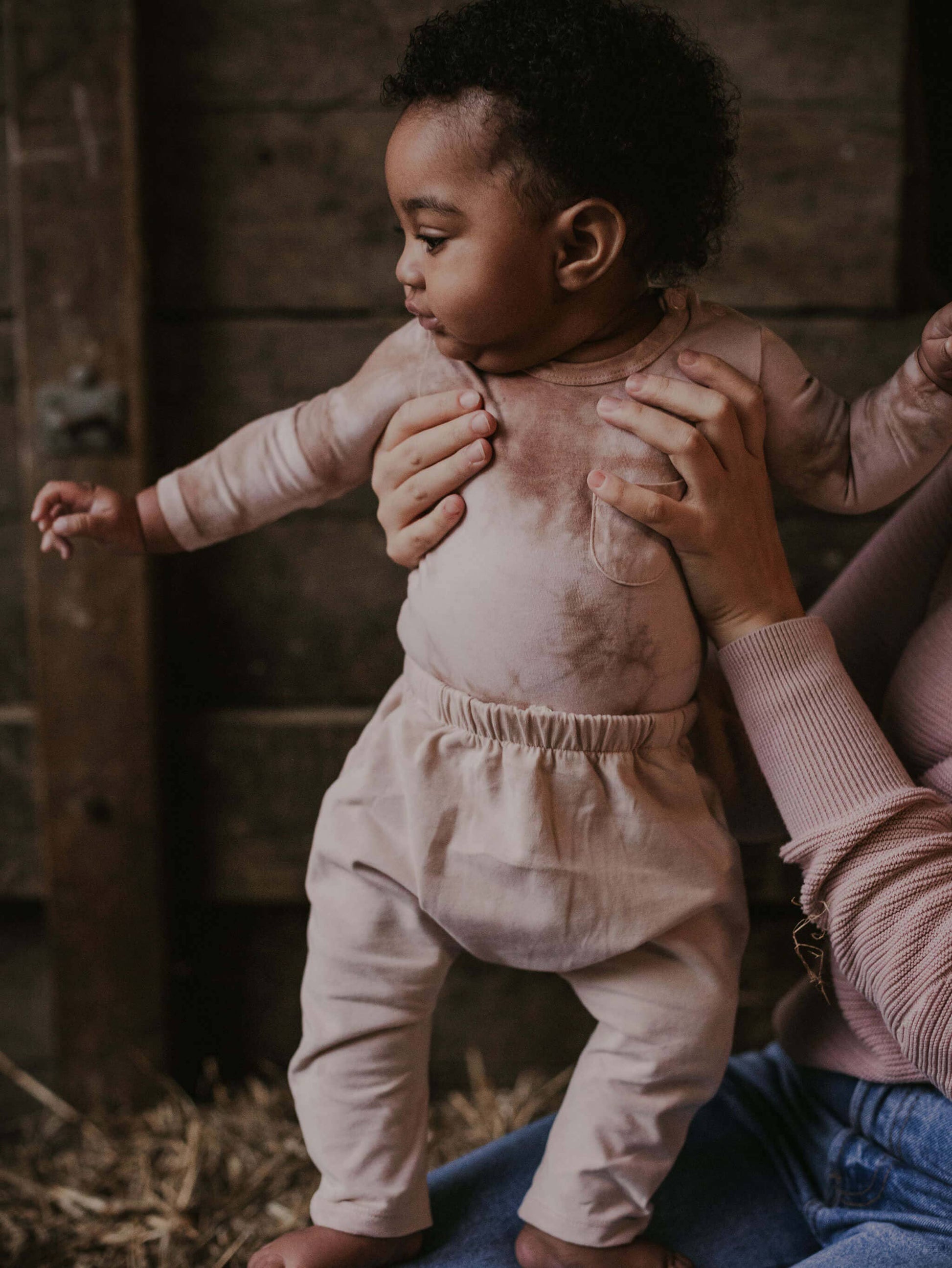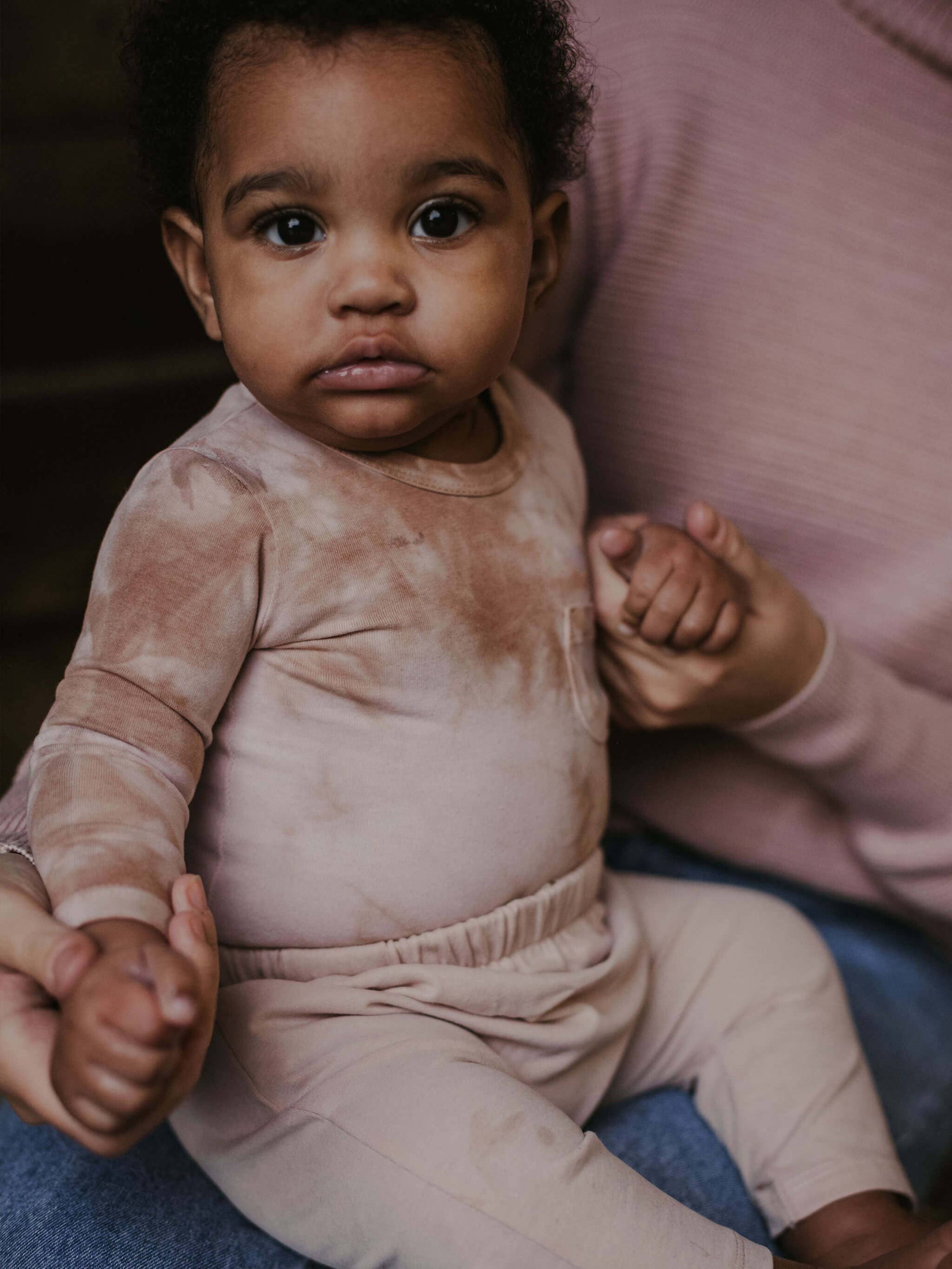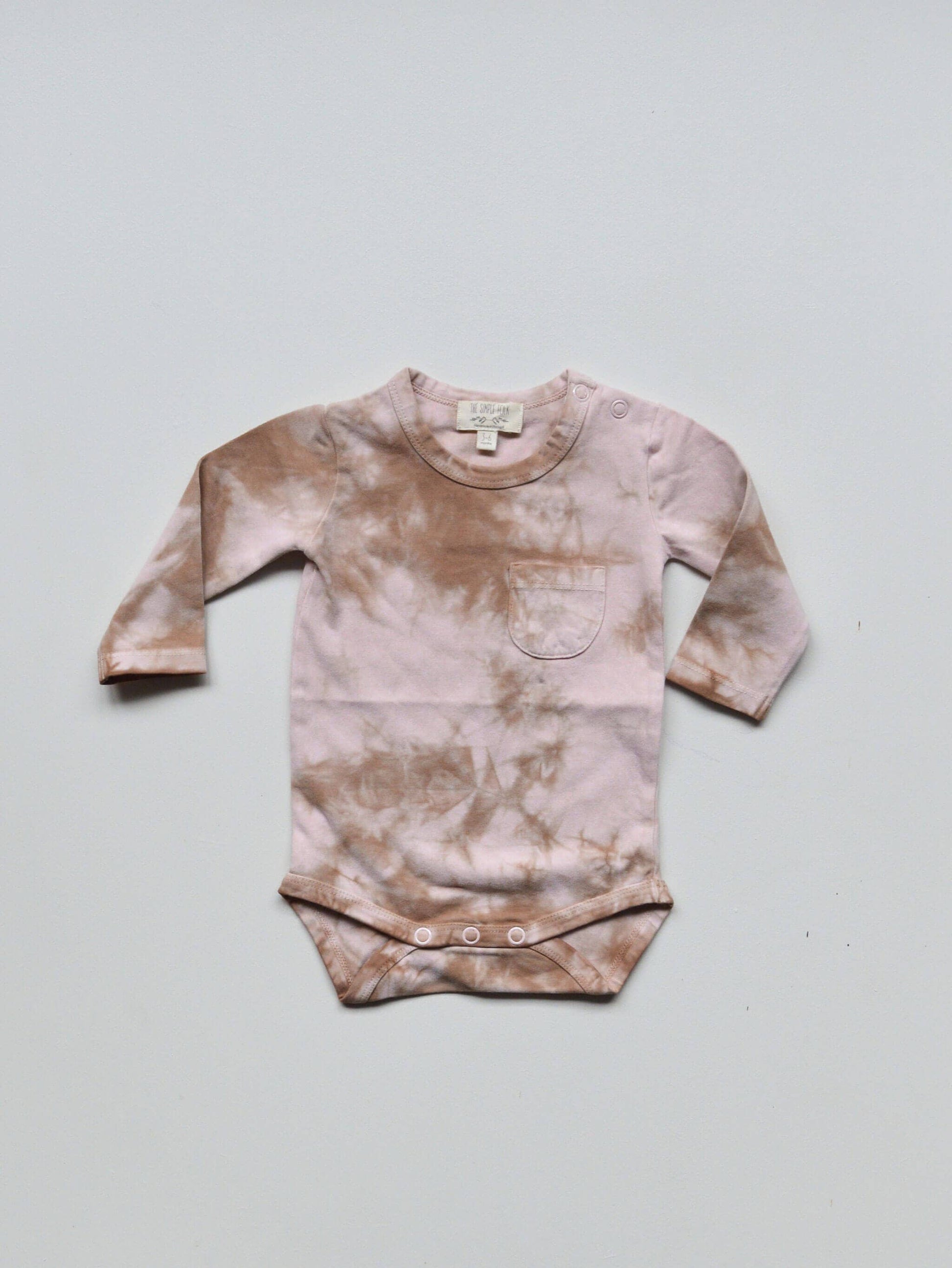 Our long-sleeve onesie is the softest and coziest wardrobe staple. It features a pocket on the front, shoulder snaps, crotch snaps, and luxuriously soft organic cotton, and is now available in warm and whimsical tie-dye.