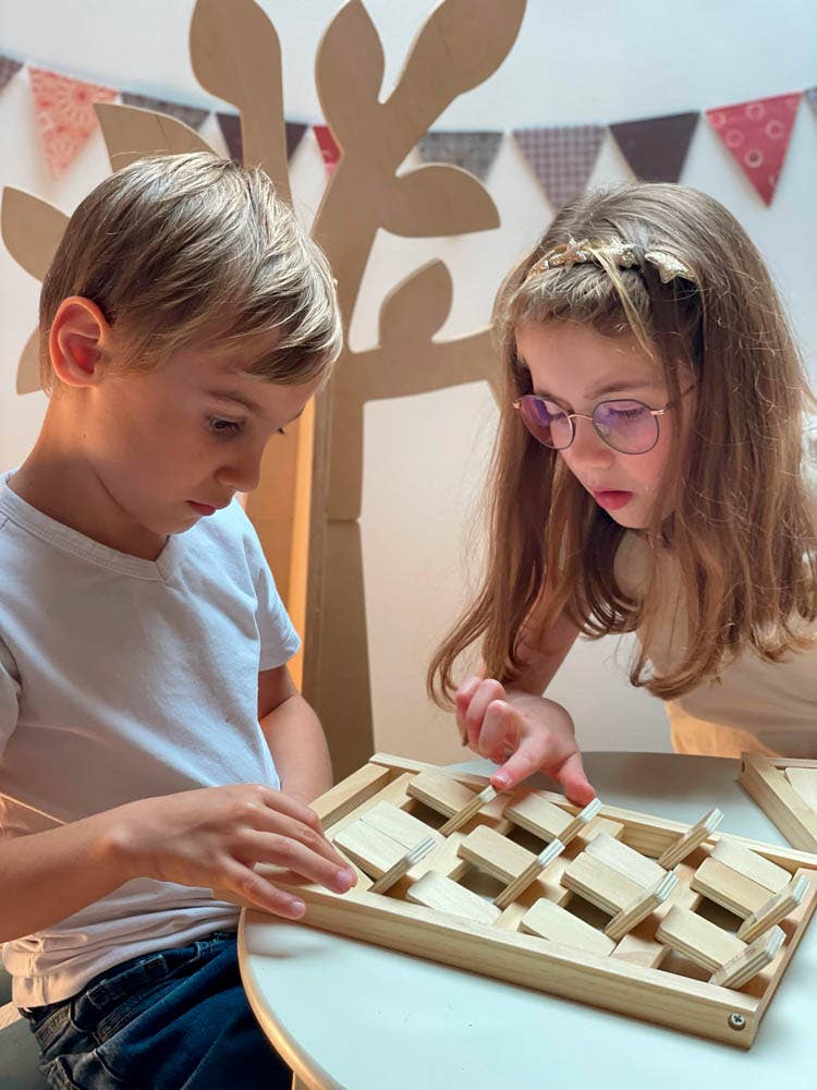Improve logic and critical thinking skills with Who Am I? This 2-player wooden game challenges players to guess their opponent's animal by asking strategic questions. Perfect for family game night or classroom learning.